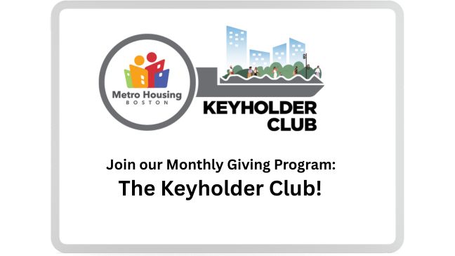 The Metro Housing|Boston Keyholder Club is a community of monthly supporters who make housing stability possible for families across Greater Boston. By joining, you will provide steady, sustainable revenue to help us prevent evictions, offer emergency cash assistance during times of crisis, and create long-term housing solutions. Being part of the Keyholder Club means becoming part of a movement that believes every family deserves a safe home they can afford.